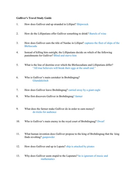 Read Online Gulliver Travels Study Guide Answers Reader